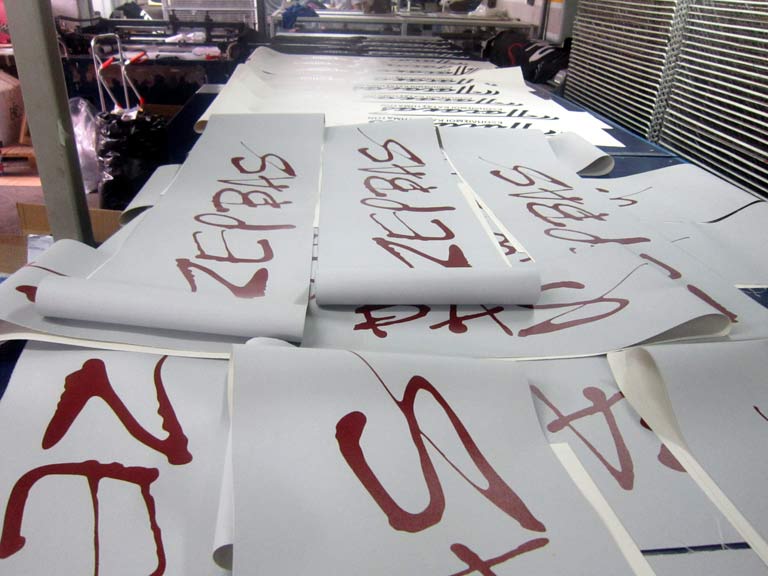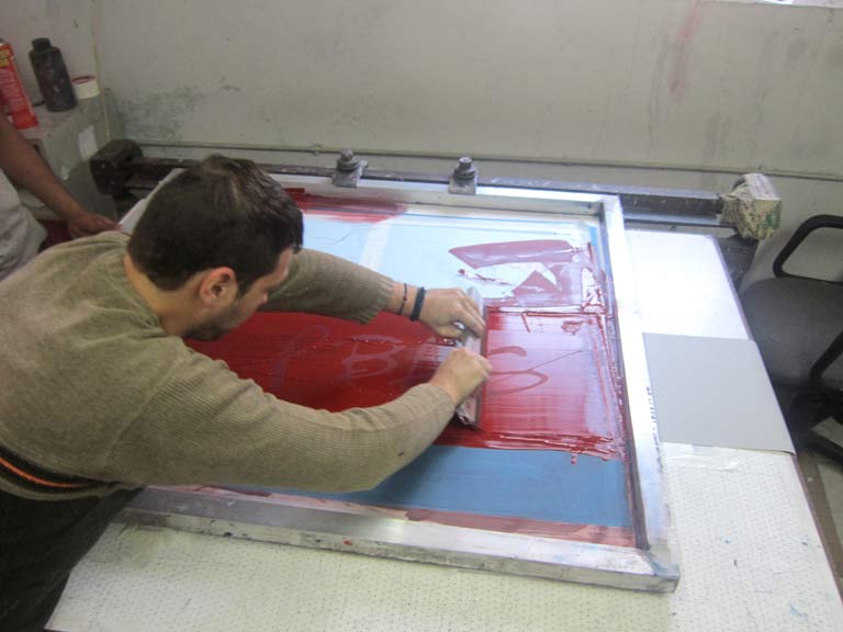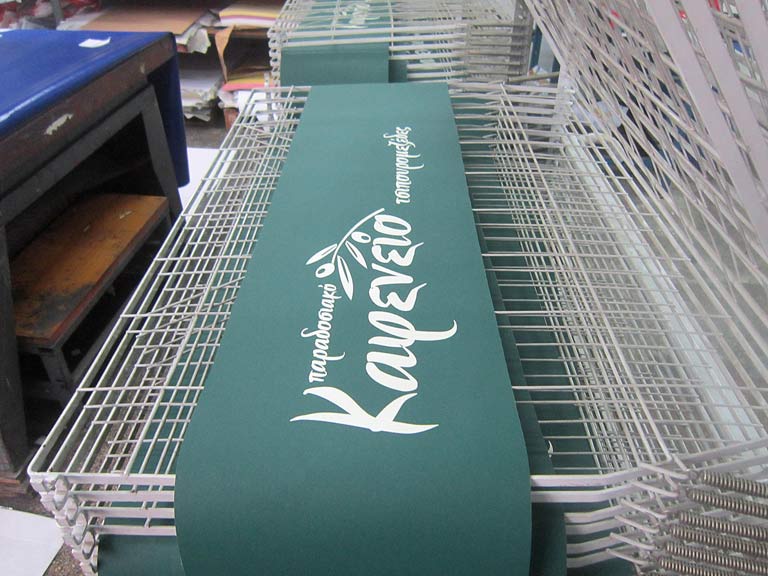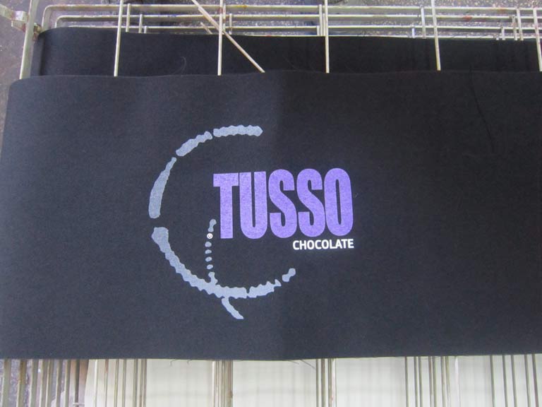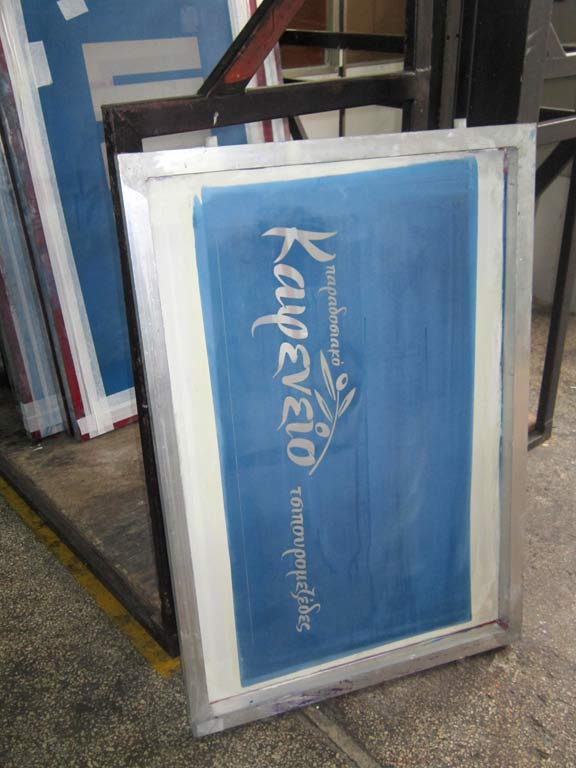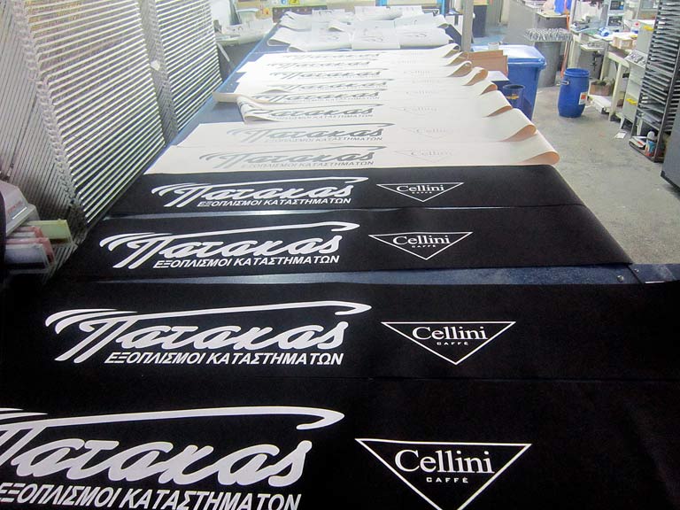 Εκτύπωση μεταξοτυπίας  με μελάνια δύο συστατικών  για καλύτερη πρόσφυση και αντοχή σε τεντόπανα (κατάληλα για εκτύπωση) .